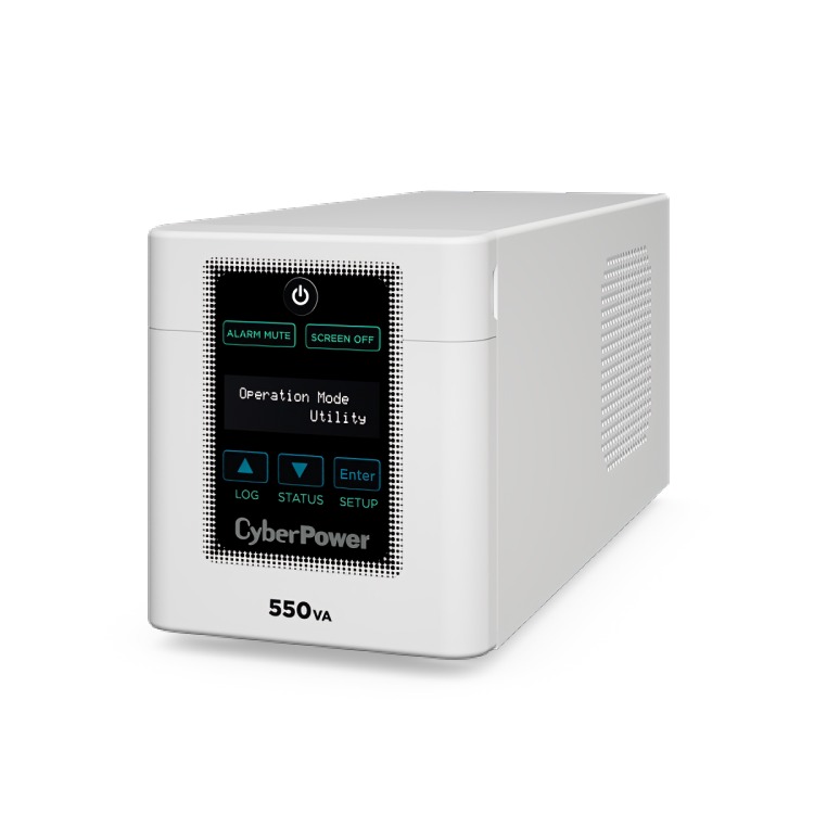 Cyberpower M550L 550VA/330W Compact Mini-Tower UPS. A space-saving UPS providing 550VA/330W of backup power for essential devices like routers, modems, and desktop computers. Its compact design, 6 outlets, and basic surge protection make it an ideal solution for maintaining internet connectivity during short power outages. UPC: 649532618699